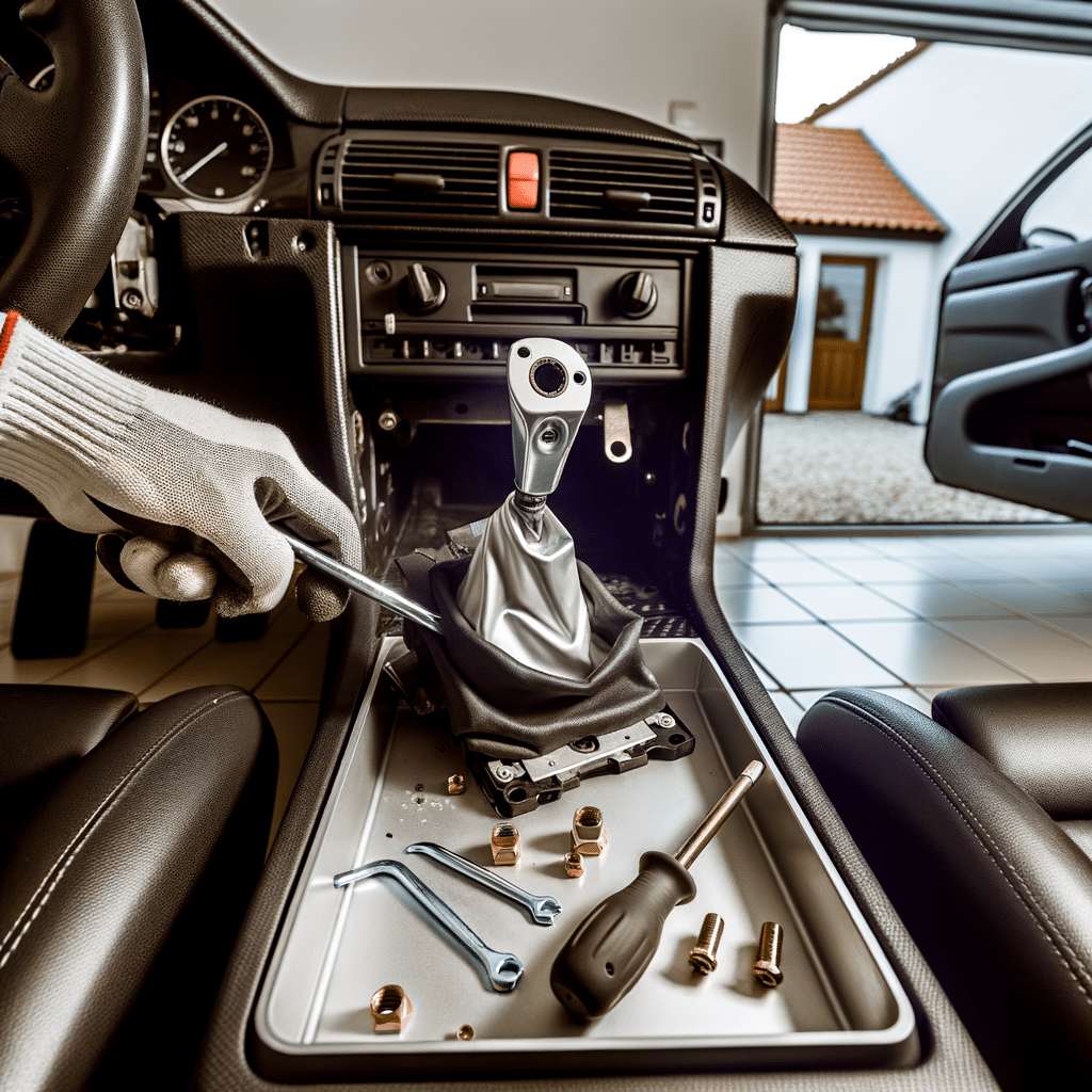 Some cars only need the boot off. Others need part of the center console removed to access bolts. Look for hidden screws under rubber mats, inside small trays, or behind trim caps.